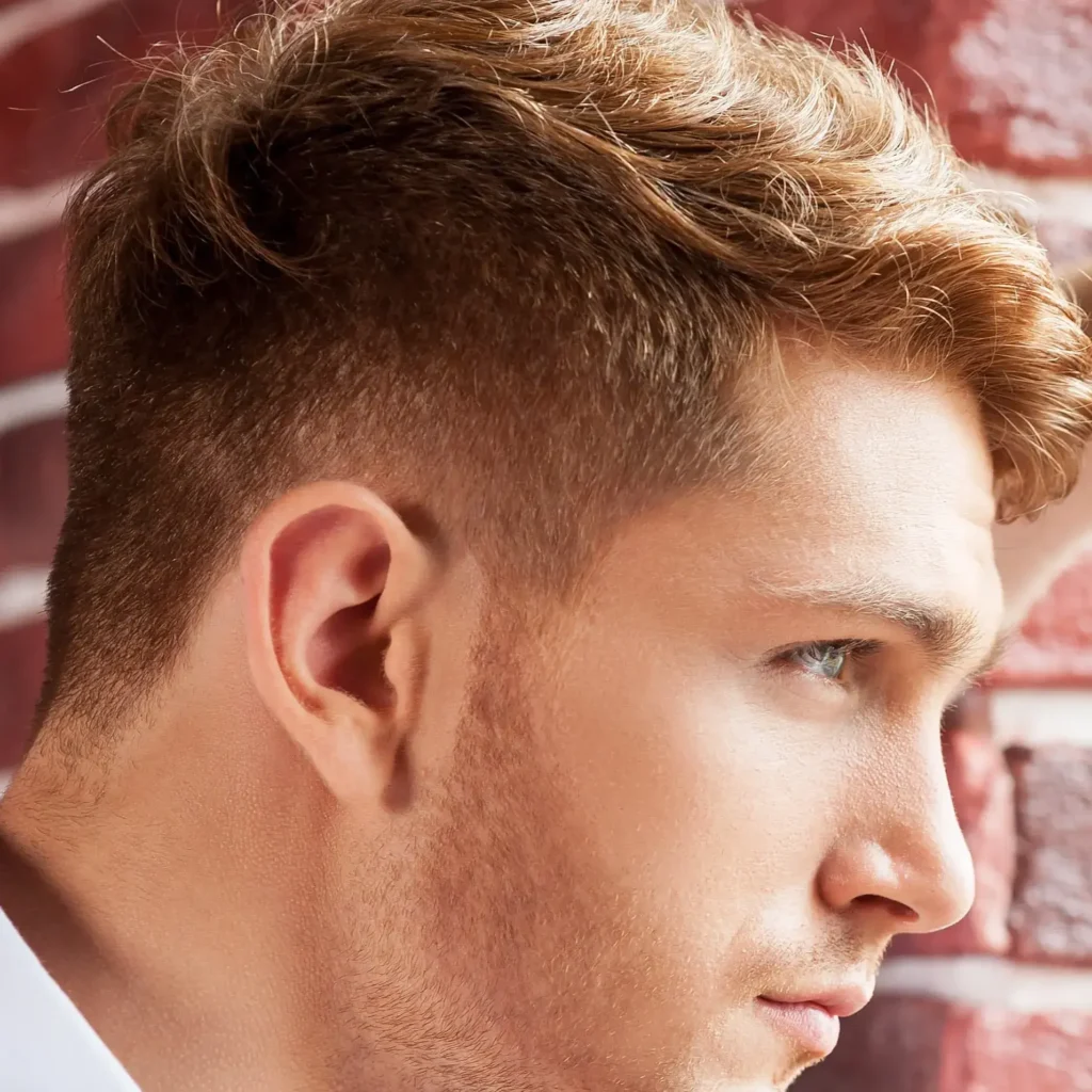 Todos hemos visto este tipo de corte undercut, es muy propio de los años 70 y agarró popularidad por la película Grease o Vaselina. El corte consiste en un undercut clásico, pero el cabello que no se recorta se deja mucho más largo permitiendo así peinarlo hacia atrás y dar el efecto de tupé. Para lograr este estilo es necesario que tu cliente tenga el cabello medianamente largo y que esté dispuesto a usar productos para peinar, de lo contrario será muy difícil lograr este estilo tan característico.