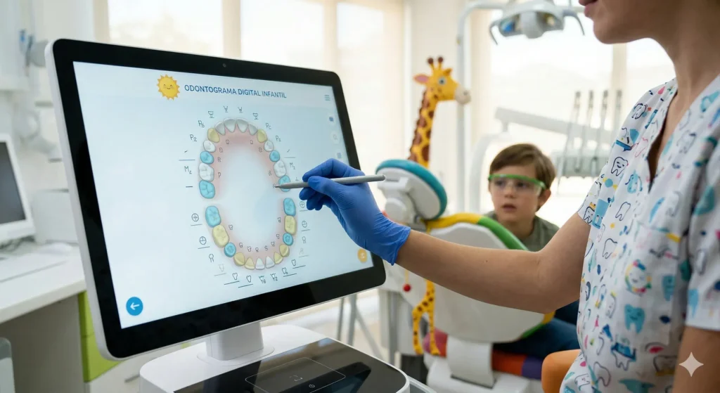 Los odontogramas digitales representan la evolución más avanzada en el registro dental infantil. Se realizan mediante software especializado, sistemas que permiten almacenar y actualizar registros automáticamente con mayor precisión que los métodos tradicionales en papel. Clínicas que utilizan registros digitales mejoran su eficiencia operativa hasta en un 30%.