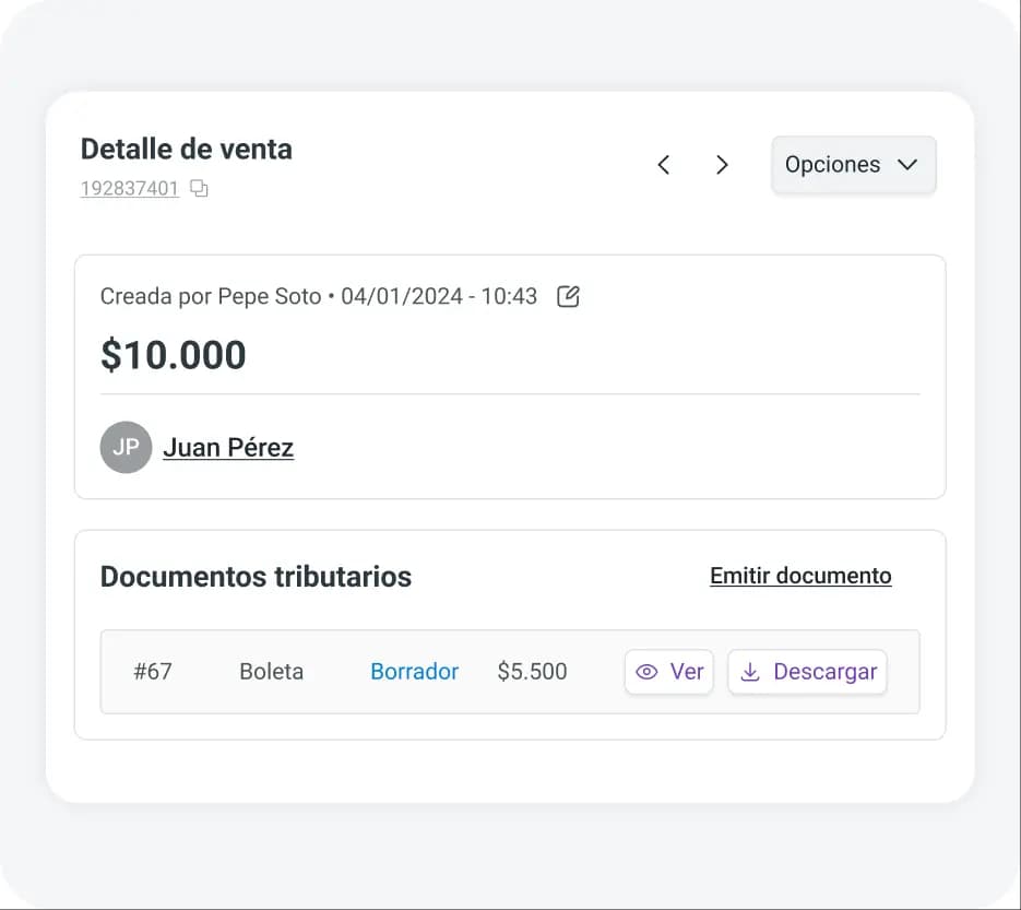 Puedes conectar la solución de emisión de boletas con links de cobros, pagos en línea y ventas presenciales con POS