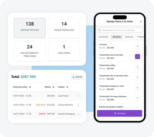 Con la ayuda de la app para podólogos, los profesionales pueden administrar fácilmente los registros de los pacientes, pagos en línea o en caja, todo lo puedes consultar en tiempo real, sin importar en dónde estés.