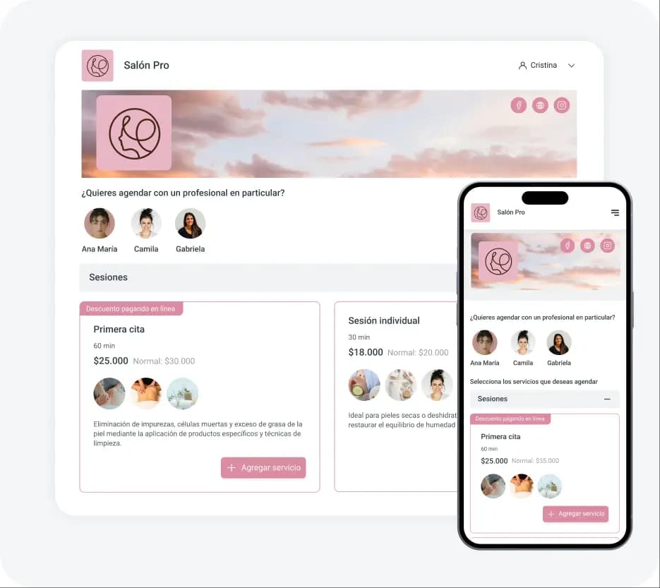 Al crear un sitio web de reservas para tu negocio, tus clientes podrán reservar a cualquier hora y desde cualquier dispositivo. Estarás un paso adelante de tu competencia con una página de reservas impecable e intuitiva para tus clientes.