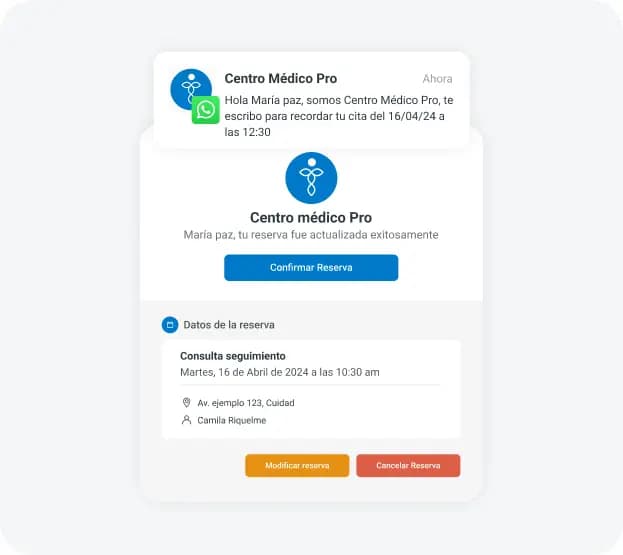 El envío automático de los recordatorios se hace por WhatsApp, SMS, email o por los tres. Y en caso de no recibir respuesta se envía un mensaje directo de Whatsapp para que el cliente confirme o cancele la cita.