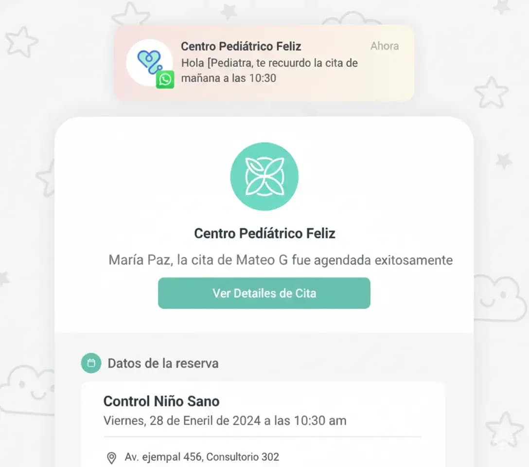 Activa las consultas por videollamada y permite que tus pacientes reserven en segundos desde cualquier lugar, sin traslados ni esperas innecesarias. Con AgendaPro llenas tu agenda, optimizas el tiempo de los pediatras y de los papás.